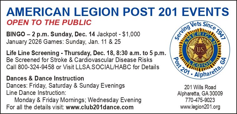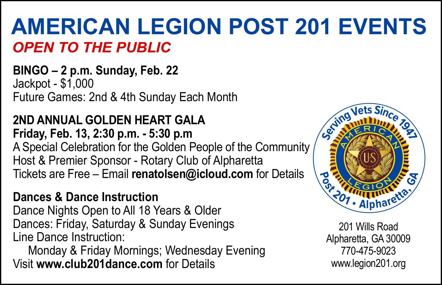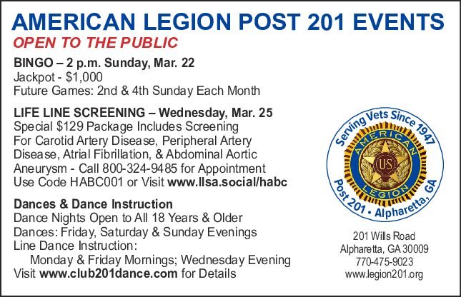 Founded in 1947, Post 201 is located at 201 Wills Road, Alpharetta, GA, 30009 and occupies 13 acres. It exists to serve the country’s war veterans and is home to a memorial that pays tribute to U.S. veterans, as well as the families and friends of Georgians who served our country and defended freedom.