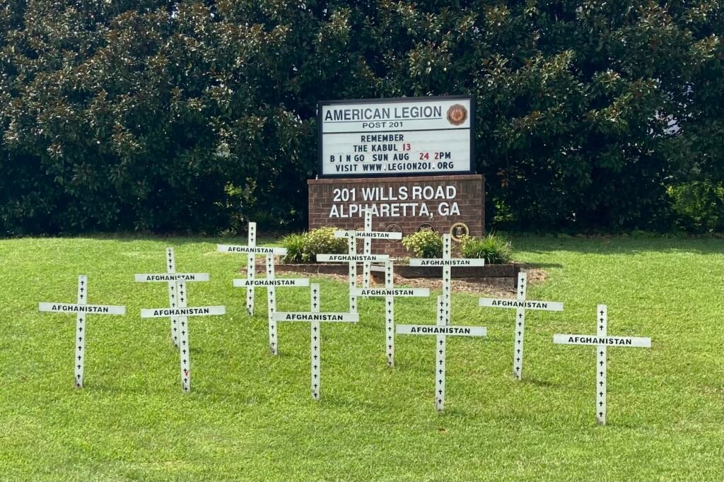 Post 201 has placed 13 crosses on the hill at the intersection of Wills Road and Old Milton Parkway/Rucker Road to mark the fourth anniversary of the Aug. 26, 2021 death of 13 U.S. Service members and numerous Afghan civilians.