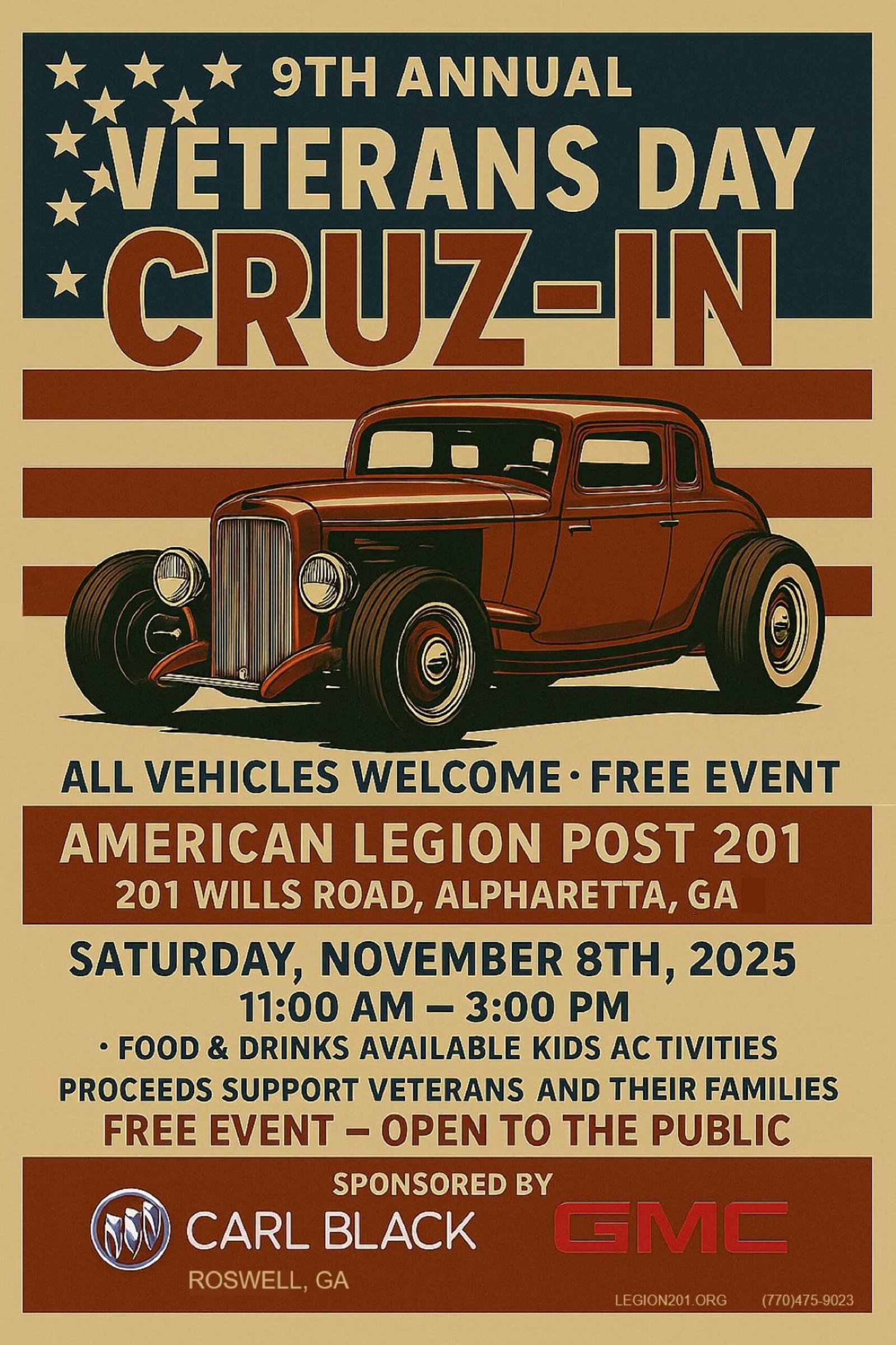 Open to the public! All vehicles welcome! Free event! Food & drinks, kids activities available Proceeds support veterans and their families.